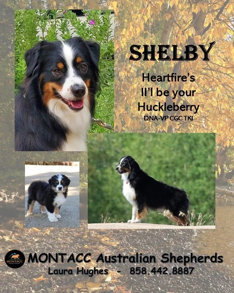 Heartfire’s I’ll be your Huckleberry “Shelby” HOF Ch. GCh. Stone Ridge Tough All Over “Kaycei” Litter Announcement Puppies due in March Pupppy Application